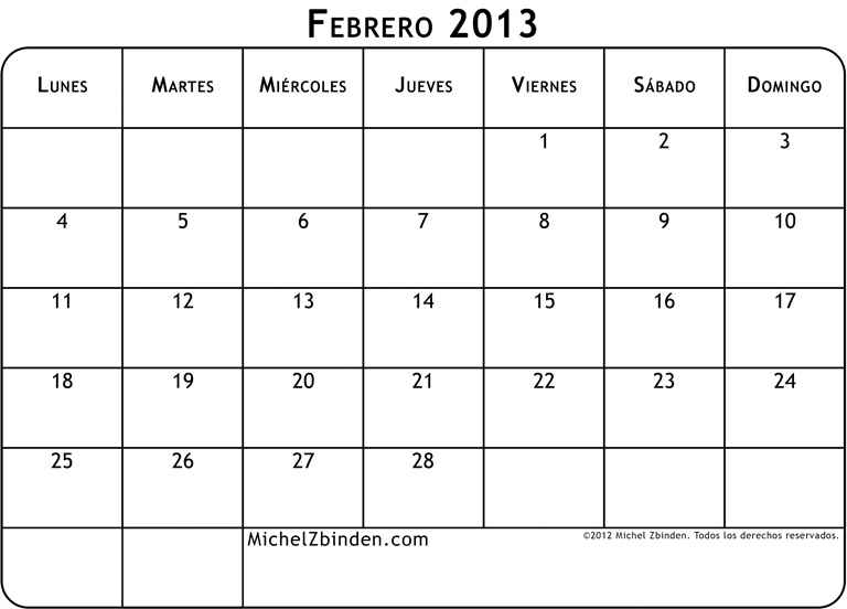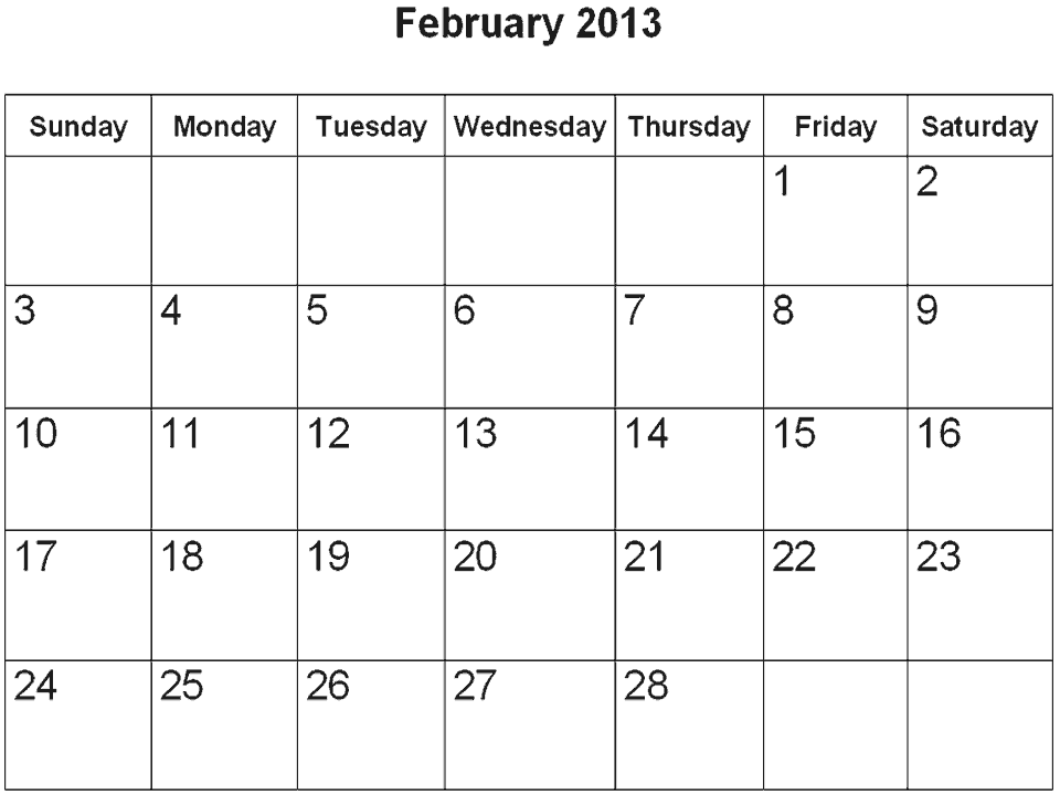 Nada mejor que un compilado de calendarios de febrero del 2013 en blanco y negro para tener a mano y descargar los que más les gusten en sus ratos libres. Todos son especiales para imprimir y lo mejor es que gastarán poca tinta al hacerlo.